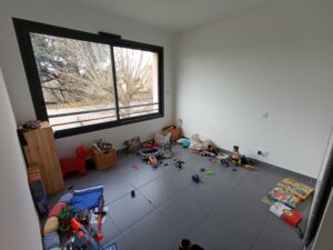 Comprenant : une cuisine équipée, un wc et un accès qu garage double. A l’étage : 4 chambres, une salle de bain, un wc et une buanderie.